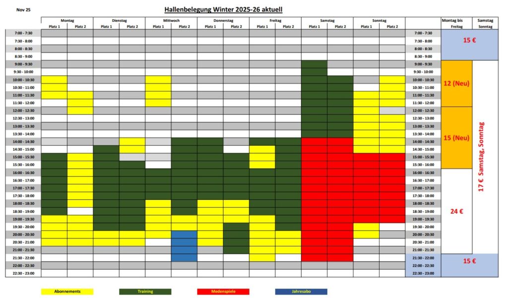 Übersicht aktueller Hallenbelegunsplan 2024/25
